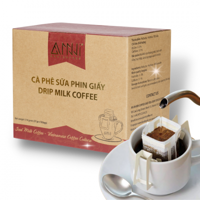 | Tên sản phẩm | Cà phê sữa phin giấy thành phần Arabica Cầu Đất và Robusta Buôn Mê Thuột (10 gói/hộp) Anni Coffee, Drip Milk Coffee |