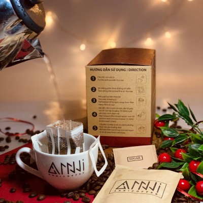 | Tên sản phẩm | Cà phê sữa phin giấy thành phần Arabica Cầu Đất và Robusta Buôn Mê Thuột (10 gói/hộp) Anni Coffee, Drip Milk Coffee |